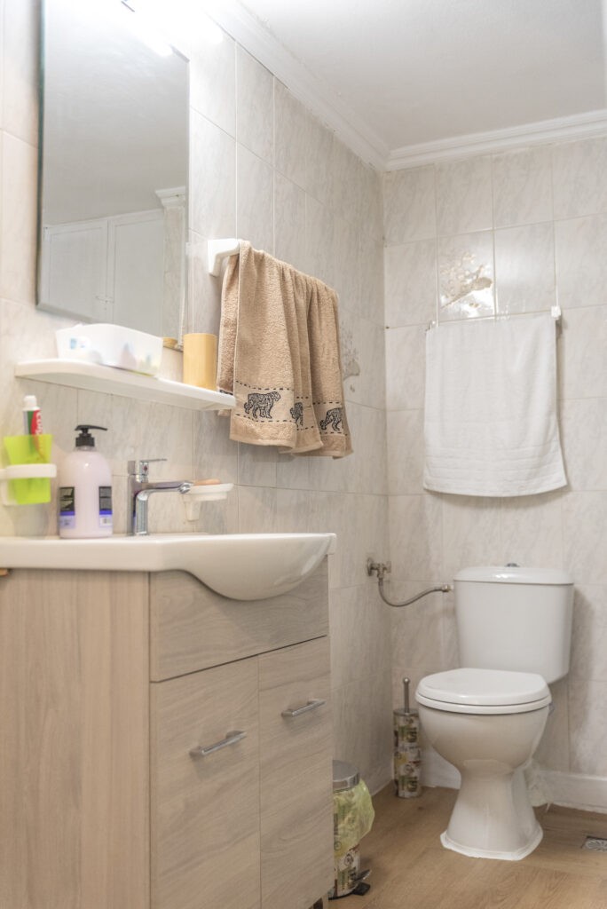 Ένα ευρύχωρο μπάνιο που έχει … – A spacious bathroom that has …